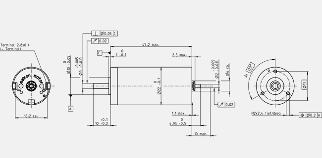 maxon DCX motors feature unrivaled power density (torque per volume) and absolutely quiet running. The robust engineering, combined with the globally patented ironless winding, makes the DCX motors a highly dynamic drive for almost every application scenario.The DCX 22 S is a true configuration miracle. Preloaded ball bearings or sintered bearings, graphite or precious metal brushes, optionally with CLL, EMI filter etc. – this wide range of choices forms the basis for a large area of application.